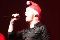 "Jingle Bells" zu singen, beobachtet von seinen Bandkumpels die mit einem breiten Grinsen kopfschüttelnd am Bühnenrand stehen während sich das ganze Kesselhaus bei