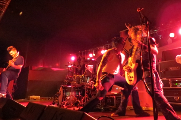Die Frage ob es eine Unart ist, die sich in den letzten Jahren am Musikmarkt breit gemacht hat, dass sich zahlreiche mehr oder minder bekannte „Stars“ der Rock und Metalszene zu sogenannten Allstar-Supergroups zusammenschließen, muss jeder Liebhaber des Genres wohl oder übel für sich selbst entscheiden. Doch selbst wenn dem so sei und man diesem Phänomen mit gespaltenen Gefühlen gegenüber steht, eines lässt sich kaum leugnen – dem Umstand, dass es vielen Musikern in Zeiten von illegalen Downloads nicht mehr möglich ist, sich die tägliche Butter fürs Frühstücksbrot mithilfe einer Band zu finanzieren, hat doch die eine oder andere musikalische Perle hervorgebracht. Dass es sich Darkscene nicht nehmen lässt, einer dieser vermeintlichen Perlen bei der Darbietung ihre Kunst auf die Finger zu schauen, versteht sich von selbst… In unserem speziellen Fall handelt es sich um eine Truppe es schon mit ihrem Debütalbum "Omerta" (zum Review) gelungen ist, die Metalszene in zwei sich gegenüberstehende Lager zu spalten, nämlich Adrenaline Mob. Schon alleine die Ankündigung, dass sich zwei ultimative Größen des Progessive-Metal, nämlich Sänger Russell Allen von der Band Symphony X und der damalige Dream-Theater-Schlagzeuger Mike Portnoy entschlossen haben, eine musikalische Blutsbrüderschaft einzugehen, ließ so manchem Progressive-Fan den Sabber aus dem Mundwinkel tropfen. Als sich nach der Veröffentlichung von "Omerta" allerdings herausstellte, dass die Musik von Adrenaline Mob mit Progressive-Metal ungefähr genauso viel zu tun hat wie Black-Metal mit einer Pilgerreise nach Rom, hing der Haussegen im Progressive-Lager gewaltig schief… und Freunde von modernem, erdig-dreckigem US-Biker-Metalrock öffneten erst mal gepflegt ein Bier und dann beide Ohren.![]() Doch so schnell schießen die Preußen nicht, und obwohl wie wir alle wissen München südlich des Weißwurstäquators liegt, blieb dem Verfasser dieser Zeilen nicht erspart, die üblichen Verpflichtungen über sich ergehen zu lassen, die da vor einer professionellen Berichterstattung harren, nämlich Aufwärmübungen der Leber in Biergarten, Anreise zum Veranstaltungsort, ausfassen der Akkreditierung, Sicherung der flüssigen Grundnahrungsmittel vor Ort und das Überstehen der Vorgruppe. Die Band, die an diesem Abend die Aufgabe übernommen hat, hörte auf den Namen Downspirit, kommen aus Stuttgart und bezeichnen ihre Musik als „Blues-Metal“. Gegründet wurde Downspirit von Ex-Freedom Call / Symphorce Gitarristen Cédric Dupont, und wenn man Hardrock als kleinsten gemeinsamen Nenner von Blues und Metal durchgehen lässt, dann kann man mit Fug und Recht behaupten, die Jungs machen ungefähr in etwa so eine Art dieser Musik. Als Anheizer waren Downspirtit gar nicht mal so ungeeignet, obwohl der Funke auf die Besucher der anfänglich auch schlecht besuchten Halle nicht wirklich überspringen wollte. Doch je länger sich die Kerle ins Zeug legten, umso mehr Zuspruch ernteten sie vom Publikum, die Stimmung stieg, die ersten Fäuste wurden in die Luft gestreckt, und am freudigen Grinsen in den Gesichtern der Bandmitglieder konnte man sehen, dass sich die Jungs in der Rolle der vermeintlichen Rockstars sichtlich wohl fühlten. Nach 45 Minuten gepflegter Unterhaltung war allerdings Schluss, das Publikum nutzte die Umbaupause um sich mit frischen Drinks an der Bar abzukühlen und sich so auf den Headliner des Abends vorzubereiten. ![]() Als um 20 nach elf die Haudegen vom Adrenaline Mob allerding straight und ohne Intro als Opener "Psychosane" in die Menge bretterten war jedem Anwesenden in der Halle klar, wo Metal-Rock mässig der Hammer hängt, nämlich genau im Hier und Jetzt auf der Stage live und in Farbe. Selten hat es eine Band gegeben, die nach ihrer ersten Veröffentlichung live auf der Bühne glasklar und eindrucksvoll unter Beweis stellt, dass sie als Ganzes weitaus mehr ist, als die Summe ihrer musikalischen Einzelteile. Über die Reputation und die Virtuosität der Mitglieder von Adrenaline Mob groß Worte zu verschwenden kann man sich getrost ersparen, Millionen von verkauften Alben diverser Bands und tausende Stunden von Bühnenerfahrung sprechen da genug für sich, Russel Allen und Mike Portnoy sind Legenden des Metals und Bassist John Moyer von Disturbed ist ebenfalls eine anerkannte Größe des Genres. Der einzige, der hier etwas aus der Rolle fällt ist Mike Orlando, der sich bisher eher als Solo und Studiomusiker einen Namen gemacht hat, aber interessanterweise mit Sänger Russel Allen gemeinsame für den Großteil des Songwritings verantwortlich ist. Doch die Tatsache, dass hinter all diesen großen Namen keine aufgeblähten Egos irgendwelcher EX-Pseudo-Rockstars stehen, sondern extrem talentierte Musiker, die sich zu einer Bruderschaft zusammengeschlossen haben mit dem Ziel, rocktechnisch dem Rest der Welt gewaltig in den Arsch zu treten, macht die Truppe extrem authentisch und sympathisch. ![]() Und dass die Jungs rocken wie Sau zeigen sie an diesem Abend von der ersten bis zur letzten Minute. Songs wie "Feelin‘ Me" oder "Undaunted" fetzen livetechnisch der Crowd dermaßen was von die Rübe weg, dass einem fast schon die Spucke im Hals stecken bleibt. Power, Energie, Virtuosität und Bühnenpräsenz suchen da gewaltig genreübergreifend ihres gleichen, man kann förmlich spüren wie es der Mob genießt unbeschwert drauf los zu rocken, ohne sich prog-mäßig auf jedes klitzekleine Break oder auf unzählige Parts konzentrieren zu müssen - hier wird nicht überkomplizierte Musik unter mentalen Höchstleistungen reproduziert, was zu sehen und zu hören ist kommt nicht aus dem Hirn sondern aus den Eiern und so soll es auch sein. Dabei schafft es die Band von Anfang an das Publikum auf ihre Seite zu ziehen, anscheinend ist es Adrenaline Mob auch gelungen sich innerhalb kürzester Zeit eine zwar kleine, aber trotzdem treue Fanbase zu erarbeiten, denn nicht wenige der angereisten Zuschauer haben weder