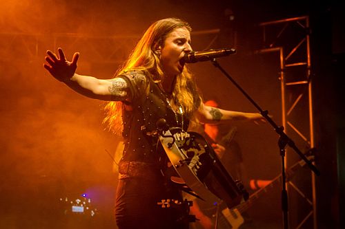 Cellar Darling blasen danach in ein ganz anderes Horn. Im Mittelpunkt steht eindeutig Sängerin Anna Murphy, die mit ihrer lieblichen Stimme und ihrer Drehleier den Sound der Schweizer bestimmt. Dabei wirkt die zierliche Frau fast scheu, so dass die Kommunikation mit dem Publikum ihr nicht so einfach zu fallen scheint. Dies mag der Tatsache geschuldet sein, dass sie bei